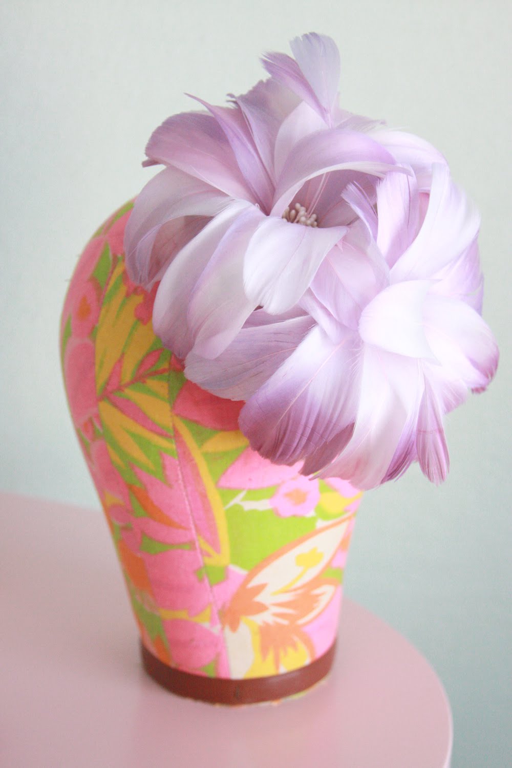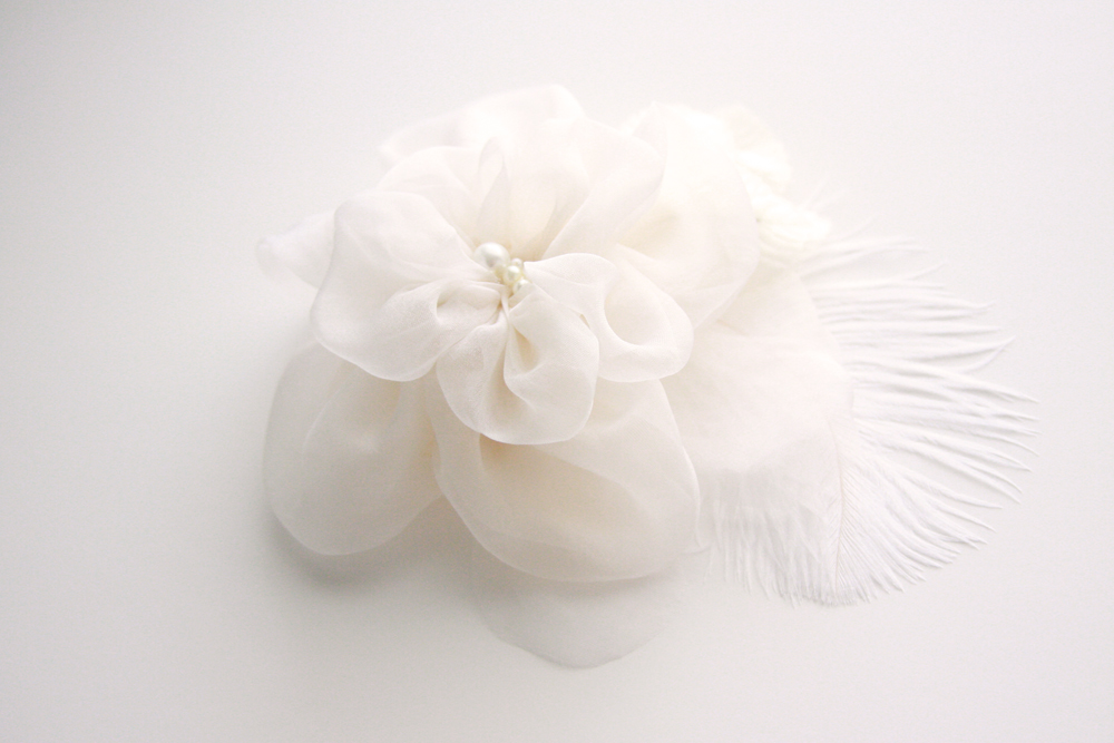 I haven't had very much time to take on custom orders, but here are the last two custom requests for some very special brides. :) These feathers were each hand dyed (remember these?) to create a colorful custom Flourish feather flower. Custom silk flower made with hand dyed and stiched silk for a soft ivory finish.
