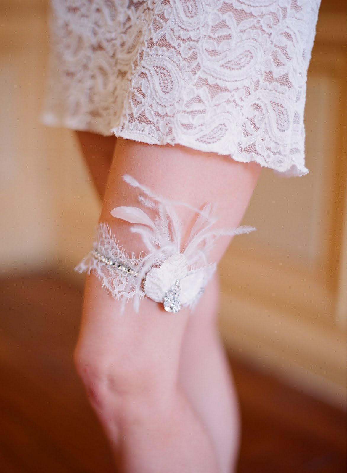 Garter, veil, headpiece: Twigs & Honey