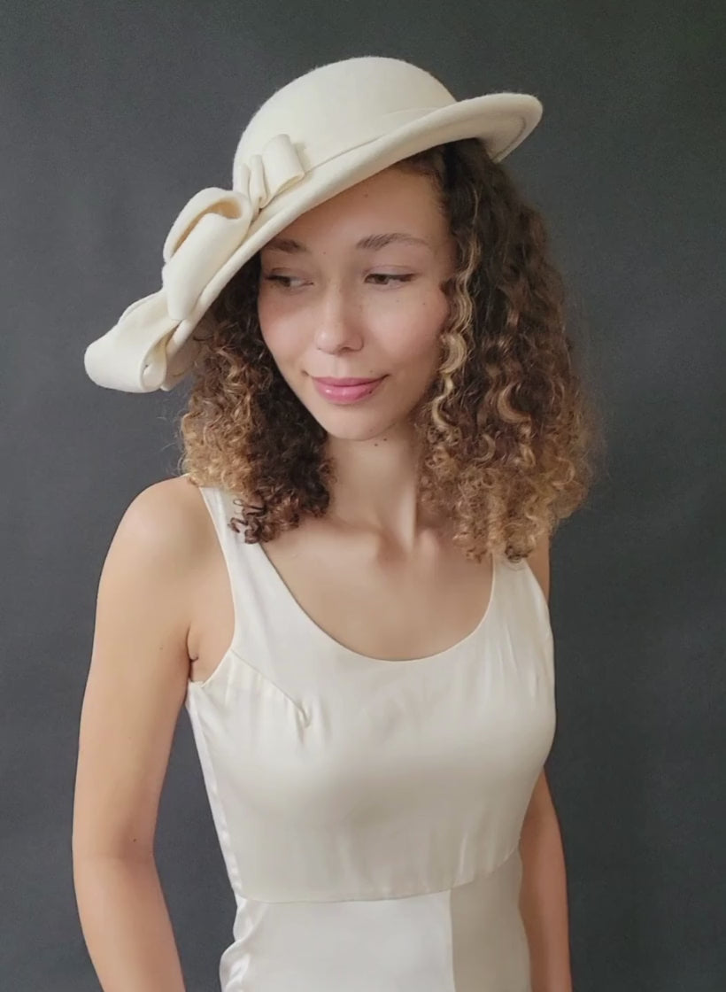 Bridal sloping wool hat with cascading bows - Style #2677