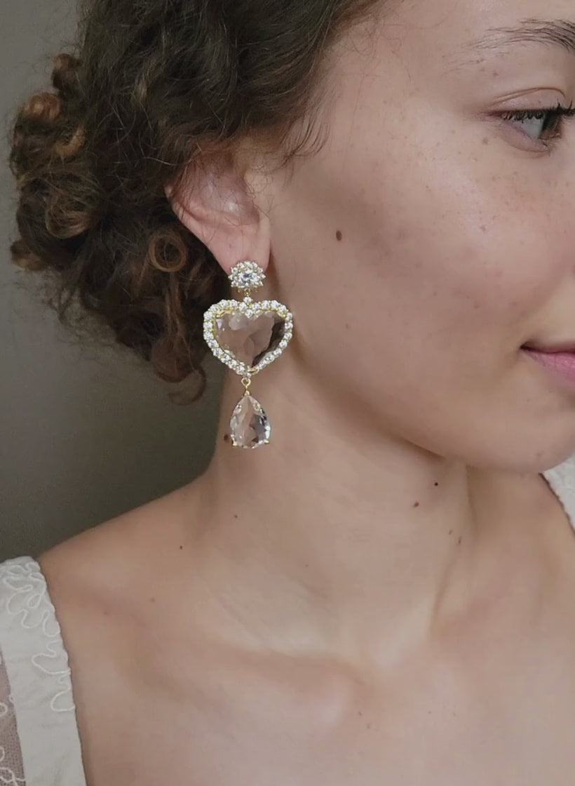 Clear heart crystal bridal earrings - Style #2682