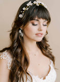 This romantic hair vine doubles as a sash and is perfect for a modern day Guinevere. It features hand sculpted flowers, hand-painted leaf charms and dainty Austrian crystals.
